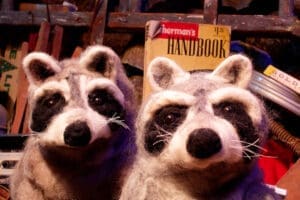 Two feuding raccoons, having found shelter from a winter storm, receive an unexpected guest....