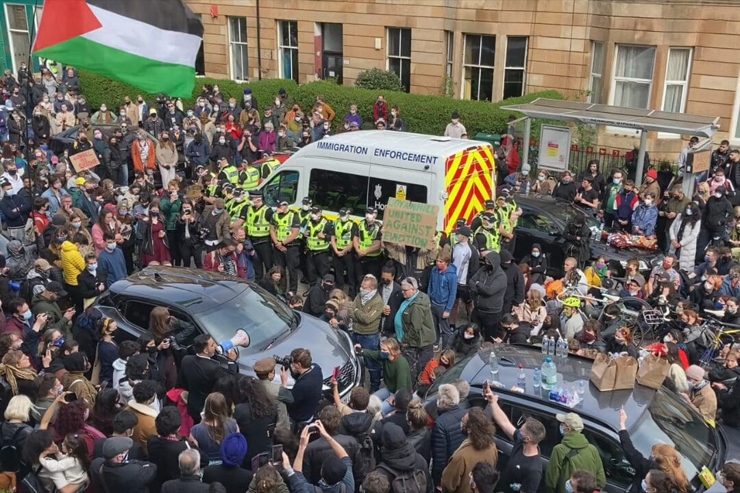 In Scotland’s most diverse neighborhood, an attempted deportation raid triggers one of the most spontaneous and successful acts of civil resistance in recent memory.